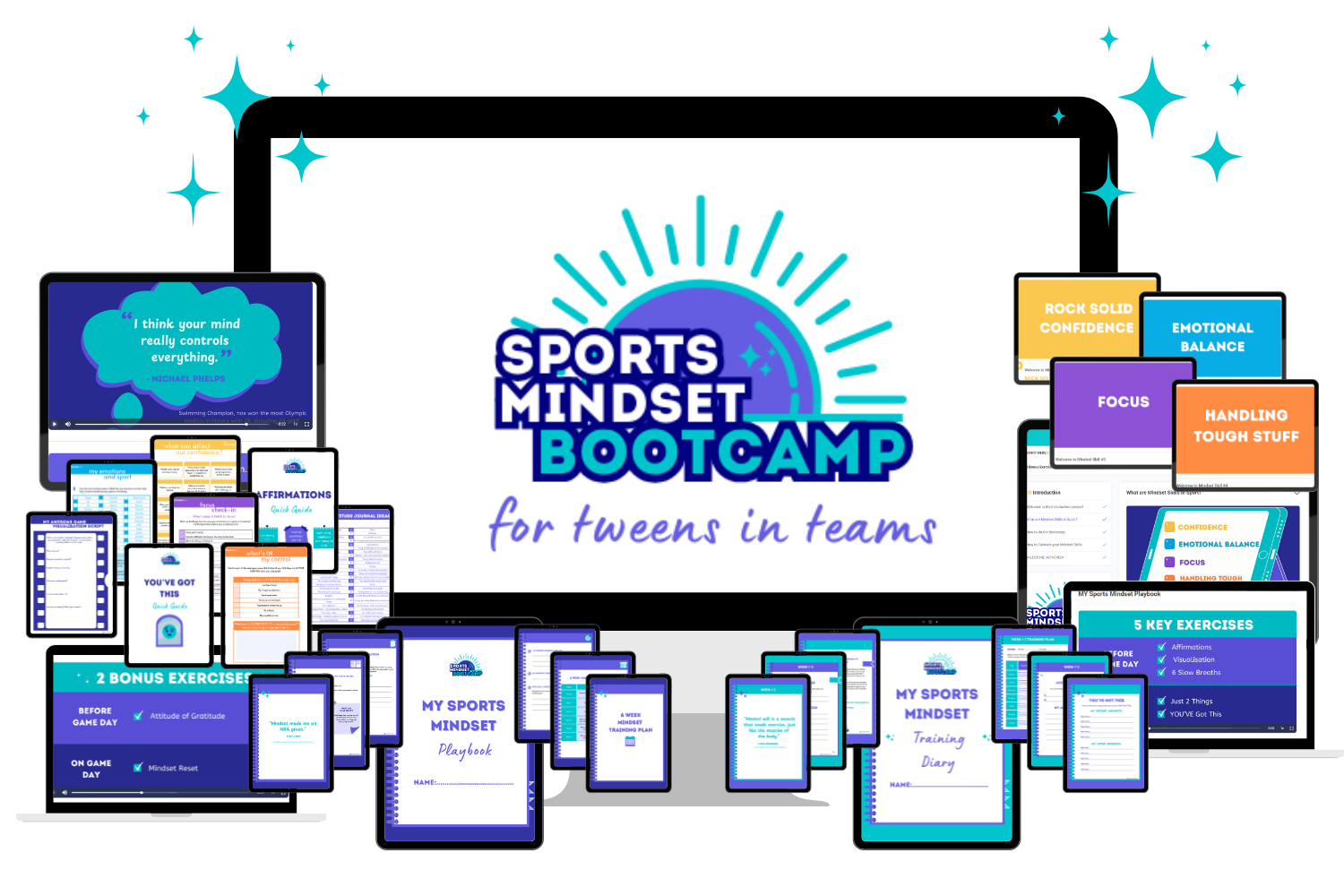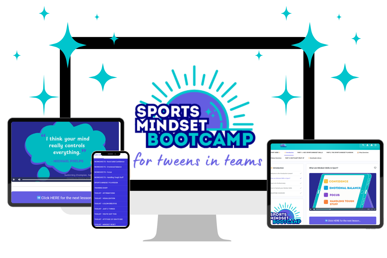 The Sports Mindset Bootcamp for Tweens in Teams is a self-paced online course for 11 and 12-year-olds who play team sport, to learn how to strengthen their sports mindset so they can improve their game, enjoy sport more and reach their sports goals.